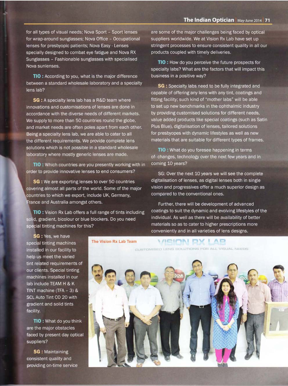 Vision Rx Lab goes international with State of the Art Digital Lab in Gurgaon. Publication: Indian Optician, May-June 2015