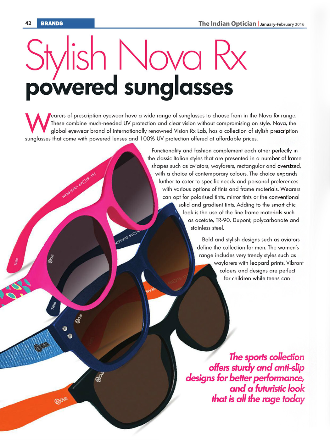 Stylish Nova Rx powered Sunglasses Featured in The Indian Optician Magazine, Jan-Feb 2016 issue